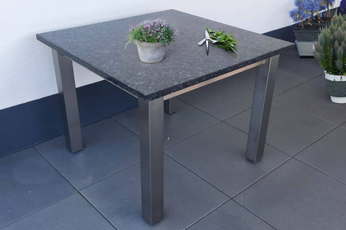 Edelstahltisch „Ehrenburg“ mit 3 cm Granitplatte „BluePearl“